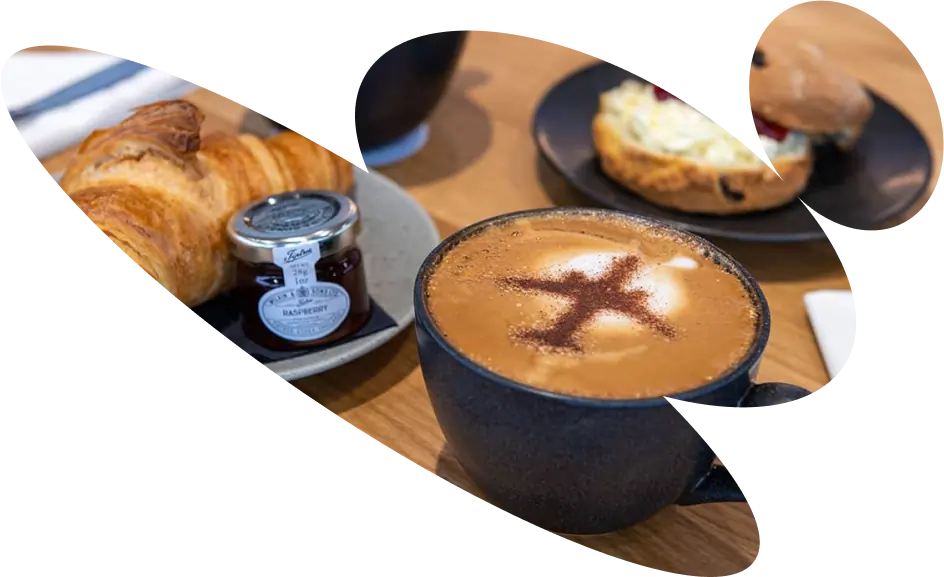 Our bakery operates all day, offering freshly baked pastries in the morning and afternoon treats such as the Airfield Cream Tea and chocolate brownies.