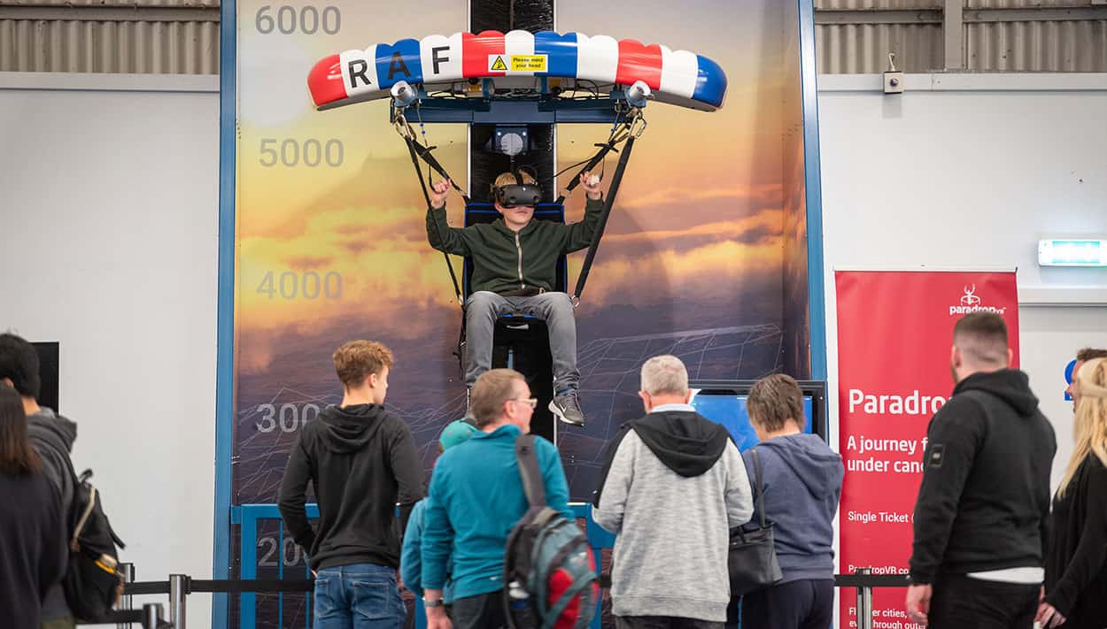 Sensational VR content combined with a thrilling range of motion will transport you into a virtual world of airborne adventures. Suitable for the rookie explorer, or racer flyers amongst us, RAF Falcons Paradrop offers Museum visitors an exhilarating flying experience.