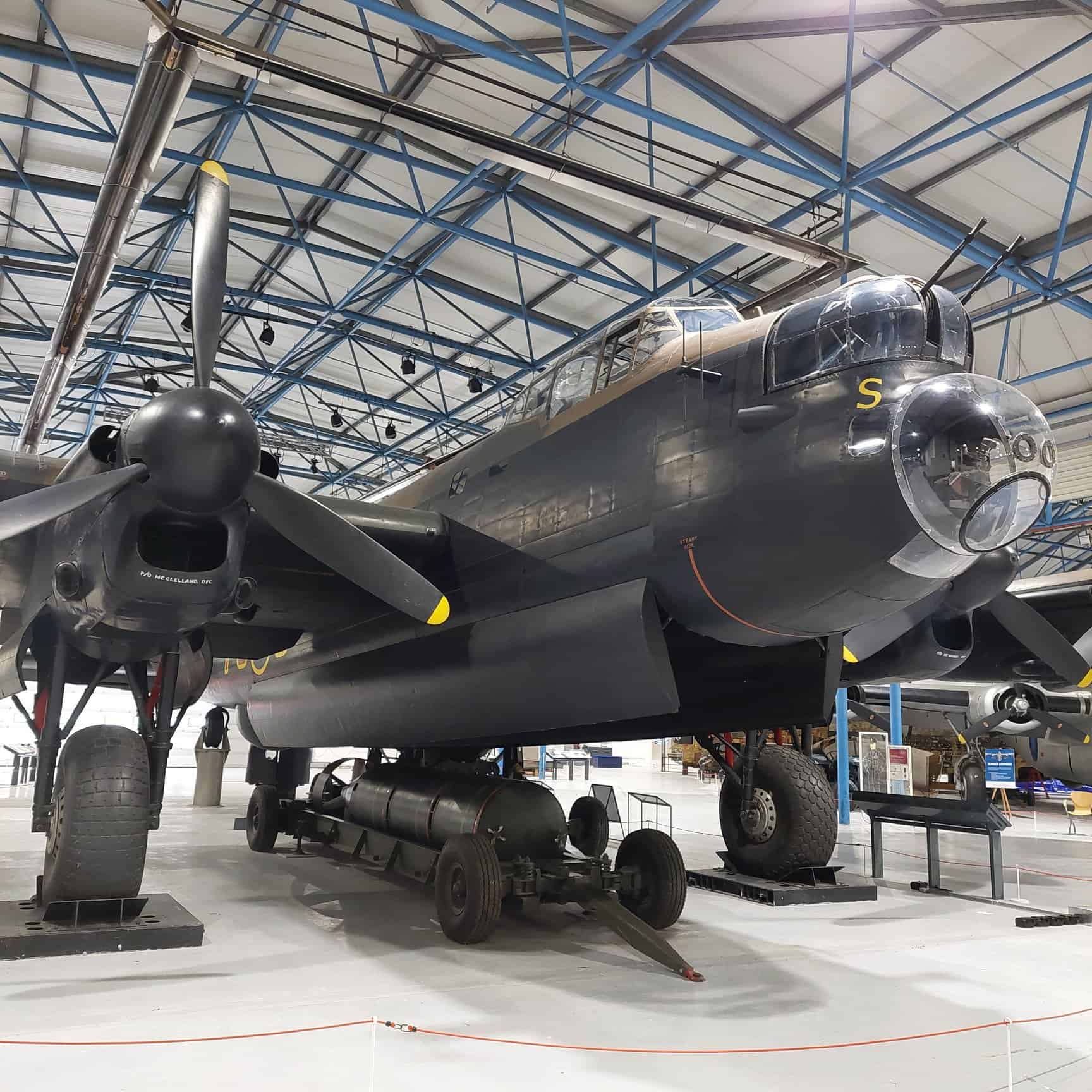 At the centre of the exhibition is the Avro Lancaster 'S-for-Sugar' which flew 137 sorties during the war. This is an extraordinary amount as 20 missions was the average to be expected from a Lancaster. Also on display are the Fairey Battle, Handley-Page Halifax, Airspeed Oxford, Consolidated Liberator, Boeing B-17 Flying Fortress, and a tail section of the Short Stirling.