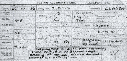 Air Ministry Form 1180 was designed to record details of aircraft accidents