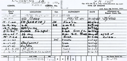 was kept by the MAP for each aircraft, recording details of the loan and